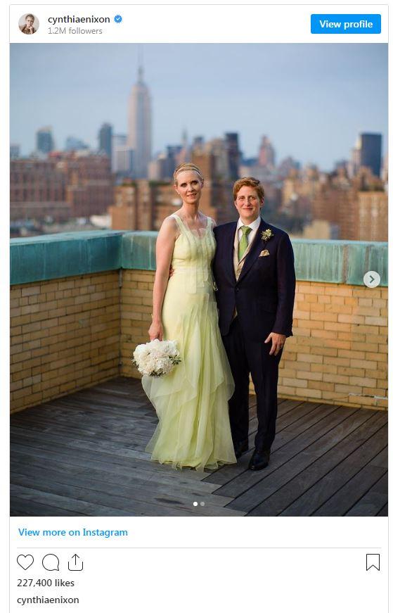 Актрисата Синтия Никсън, най-известна с ролята си на Миранда в "Сексът и градът", най-накрая разкри дългогодишната си половинка. 56-годишната актриса публикува снимка със съпругата си на годишнината от сватбата им в социалните мрежи.