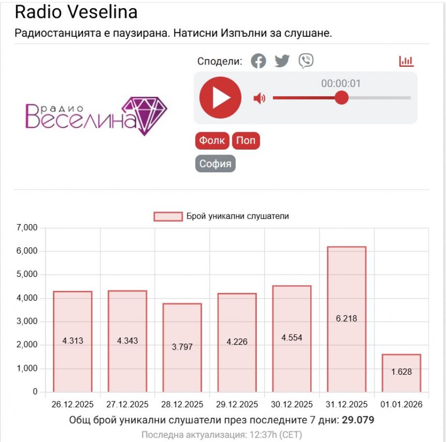 Класация: най-слушани онлайн радиостанции на 31 декември